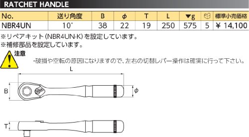 【KTC】 ネプロス 12.7sq.ラチェットハンドル[型番 : NBR4UN]
