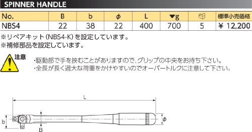 【KTC】 ネプロス 12.7sq.スピンナハンドル[型番 : NBS4]
