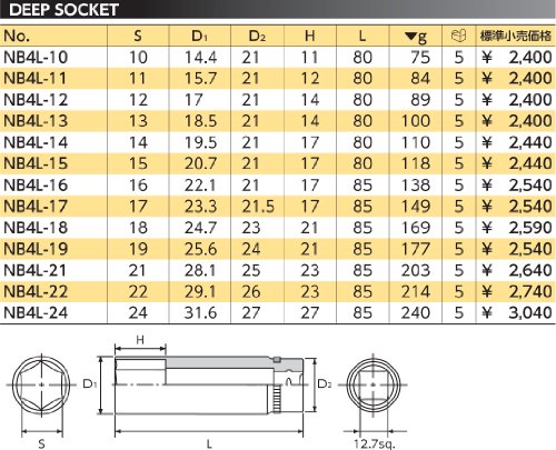 【KTC】 ネプロス 12.7sq.ディープソケット(六角)[型番 : NB4L-16]