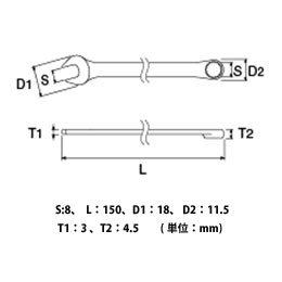 標準タイプより全長が長く、力が加えやすくなっています。 柄部には京都市内を流れる高瀬川の川面に桜の花びらが舞う様子をモチーフにしたデザインを施しました。めがねレンチ側の口径部には応力の集中を防ぎ、ボルト・ナットにやさしいパワーフィット形状を採用しました。