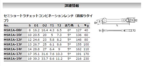 【KTC工具】 セミショートラチェットコンビネーションレンチ(首振りタイプ) 12角 19mm / MSR1A-19F