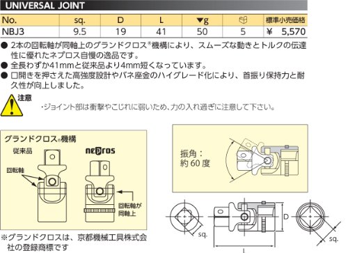 【KTC】 ネプロス 9.5sq.ユニバーサルジョイント[型番 : NBJ3]