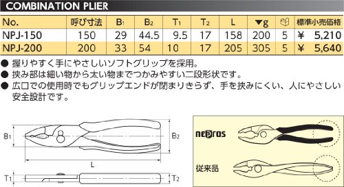 【KTC】 ネプロス プライヤ [型番:NPJ-200]