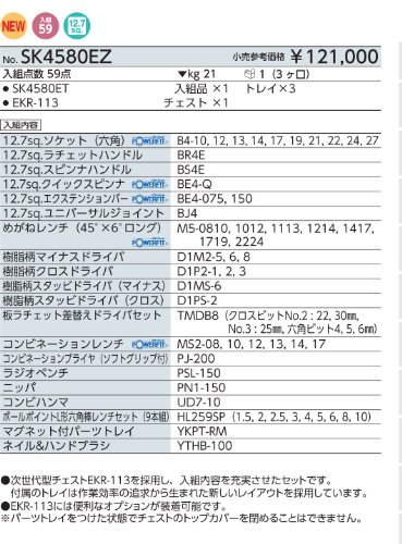 【KTC】 工具セット(チェストタイプ) [型番:SK4580EZ]