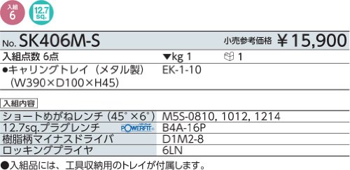 【KTC】 両開きメタルケースセット用オプション [型番:SK406M-S]
