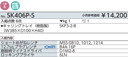 【KTC】 両開きプラハードケースセット用オプション [型番:SK406P-S]