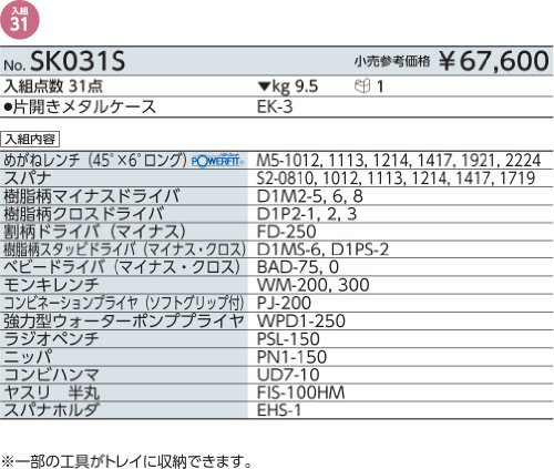 【KTC】 工具セット(片開きケースタイプ) [型番:SK031S]
