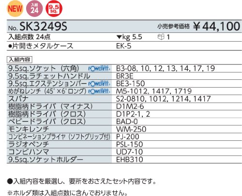 【KTC】 工具セット(片開きケースタイプ) [型番:SK3249S]