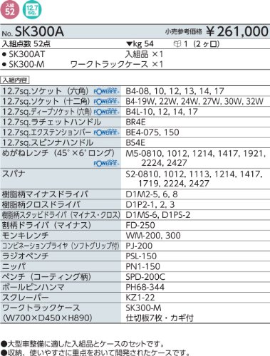 【KTC】 大型車整備用工具セット [型番:SK300A]