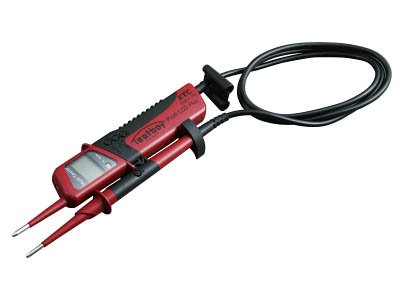 - ●サイズ:長さ・238mm×幅・70mm×厚み・30mm●重量:200g●測定範囲:電圧 6-1000V AC/DC,0-400Hz・抵抗 0-2000Ω・導通 0-150Ω(音響信号)●電源:単4電池(1.5V DC)×2本●使用可能温度:-10℃~50℃