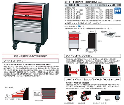 【KTC】 ローラーキャビネット(8段8引出し) [型番:EKX-118]