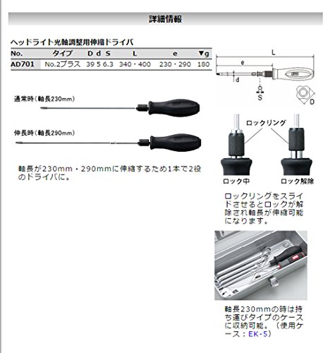 【KTC工具】 ヘッドライト光軸調整用伸縮ドライバ No.2プラス AD701