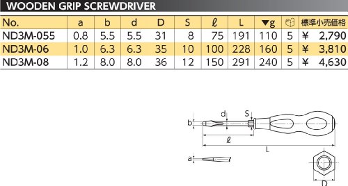 【KTC】 ネプロス 木柄ドライバ貫通タイプ(マイナス) [型番:ND3M-055]