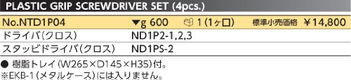 【KTC】 ネプロス 樹脂柄クロスドライバセット[4本組] [型番:NTD1P04]