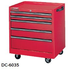 全高650mmの高さなのでツールケース用ワゴンとしても便利です。 5段の引出し付で小物管理に便利です。 オールロック方式。カギ1個所で全段引出しのロックができます。 各引出しの耐荷重は約30kgまでです。 総耐荷重は160kgまでです。 キャスター径75mm、自在ストッパー付き、固定キャスター各2個。