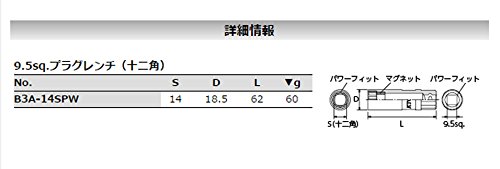 【KTC工具】 3/8 9.5sq 12角 プラグレンチ (14mm) B3A-14SPW
