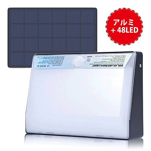 屋外ソーラーモーション検出器ライト 48耐候性と防水ステンレスアルミ合金ハウジング(シルバー)とセキュリティのためのLED輝度センサライト (ブラック)