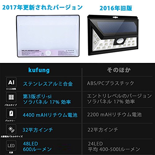 - ★超明るいLEDのソーラーライト★ - KUFUNG屋外モーションセンサーソーラーライトは、優れた照明を提供し、明るい照明空間に暗い空間を回すのに十分明るい48明るいLEDライトを持っています。セキュリティのための偉大な検出器。夜間暗闇の中で屋外にいる心配はありません。