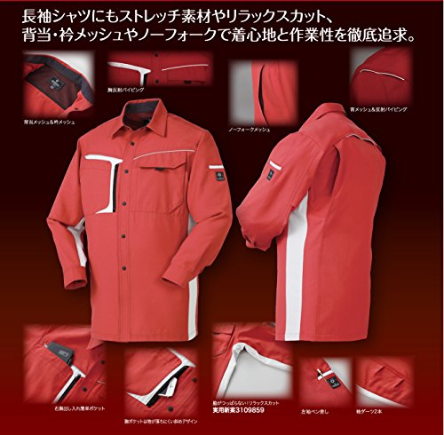 メッシュを背当・背・衿部分に多用し、ストレッチ&制電素材で、夜間作業に安心な反射パイピングを前後に施しました。