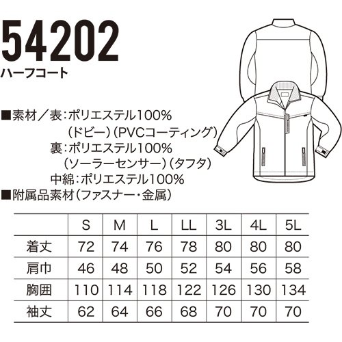 - 特徴 : 衿部、背当てにソーラーセンサー採用。
