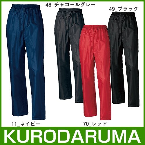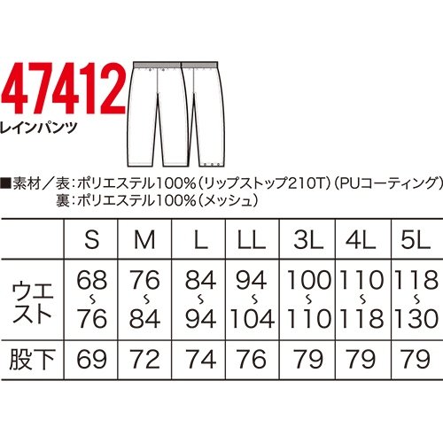 男性 メンズ 通勤 機能性 雨 自転車 作業着 作業服ー ■素材/表地:ポリエステル100%(リップストップ21OT)(PUコーティング) 裏地:ポリエステル100%(メッシュ) ■透湿性3,000g/m2.24h ■耐水圧10,000mm ■ウエスト全ゴム&パンツエア抜き ■裾調整ボタン