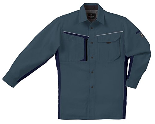 KR:25598 長袖制電シャツ (男女兼用 ストレッチ)(M 48: チャコールグレー×ネイビー)