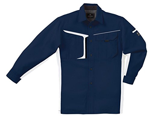 KR:25598 長袖制電シャツ (男女兼用 ストレッチ)(LL 11: ネイビー×シルバー)