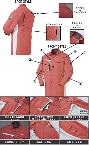 - ■右胸出し入れポケット■左袖ペン差し■脇がつっぱらない。リラックスカット■ノーフォークメッシュ■胸&背メッシュパイピング■背当メッシュ■脇調整ボタン