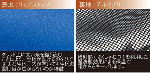 - 素材/表:ポリエステル100%(リップストップ)(PUコーティング)裏:ポリエステル100%(タフタ)(アルミプリント)中綿:ポリエステル100%