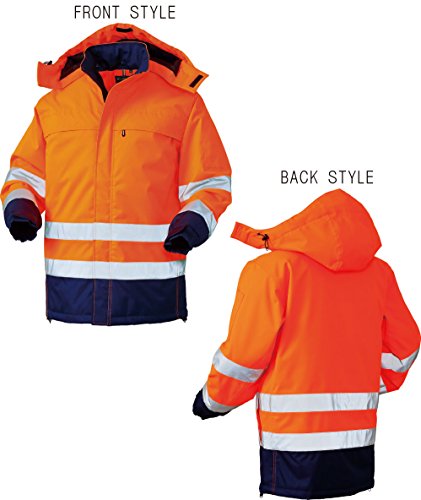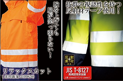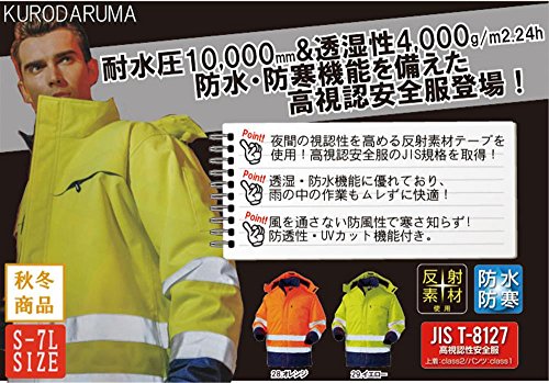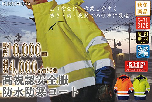 耐水圧10,000mm!透湿性もあるのでムレも軽減!防寒 防水 撥水 保温性 防風性 作業着 作業服 雨の中の作業も安心! 防水・防寒に優れた 高視認安全服登場! 雨や雪の中の過酷な環境でに一押しの作業服 JIS規格を取得した高視認性に加え長時間の雨の中の作業でも中の服まで雨が浸透せず暖かい! さらに透湿性もあるので気になる汗のムレも軽減してくれます。 反射テープ幅50mm ■保温性抜群■左胸ポケット