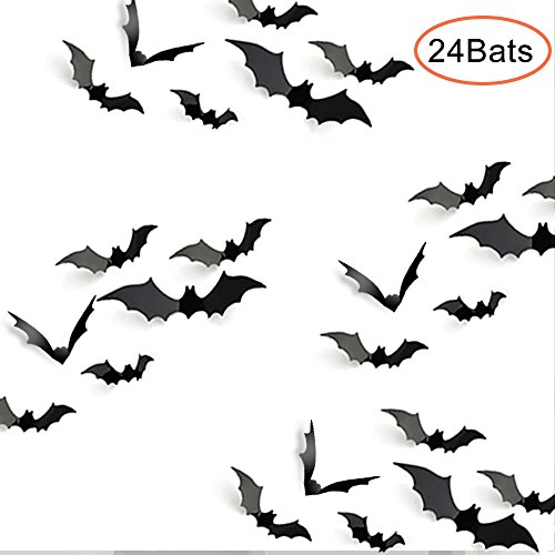 KUUQA ハロウィン ウォールステッカー コウモリ 装飾 部屋 飾り 3D立体 PVC製 パーティー 小物 リサイクル 24個