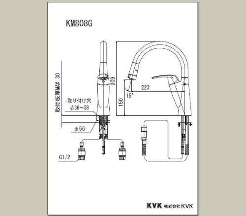 [KM808ZG]KVK 栓金具 シングルレバー式シャワー付混合栓 台所 ケーブイケー 寒冷地用