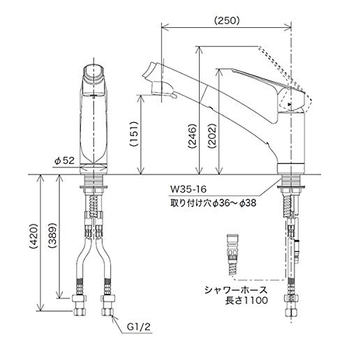 KVK:流し台用シングルレバー式シャワー付混合栓 型式:KM5021TEC