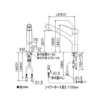 KVK 浄水器付シングルレバー式シャワー混合水栓(シャワー引出式) KM5061N