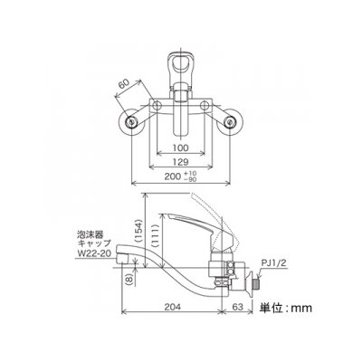 KVK シングルレバー式混合水栓 上向きパイプ付 寒冷地用 KM5000ZTH