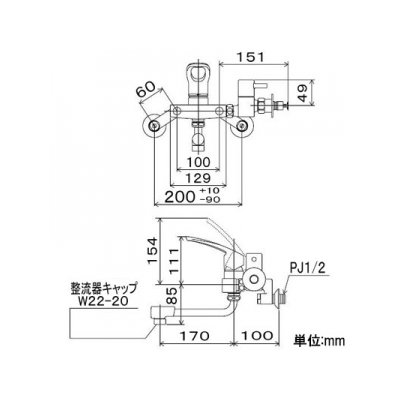 KVK シングルレバー式混合水栓 分岐止水栓付 とめるゾウ付 寒冷地用 KM5000ZCHTTU
