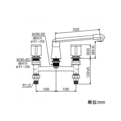 KVK 2ハンドル混合栓(ナット接続) 【KM82GTLCU】