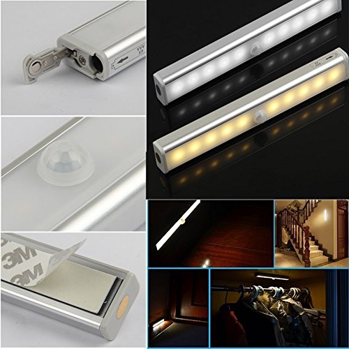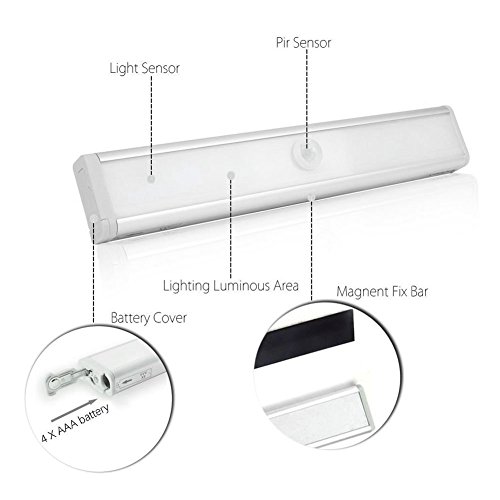 KYC 10LED 光センサー 人感センサーライト 配線不要 乾電池式 貼り付け型クロゼット屋内など 昼光色[4個入]