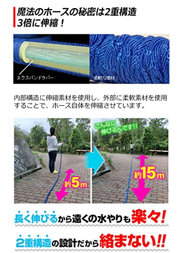【 お得な2本セット 】 伸びるホース 魔法のホース 伸縮ホース 改良版 超軽量 ホースリール 洗車 軽い ガーデニング
