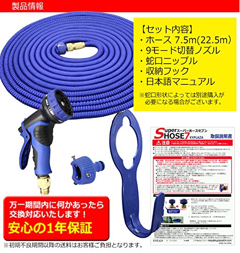改良版 伸びるホース 魔法のホース 伸縮ホース 銅製金属 採用 ホースリール 水撒き 洗車 ガーデニング びっくりホース 7m 22m 収納フック 付 1年保証