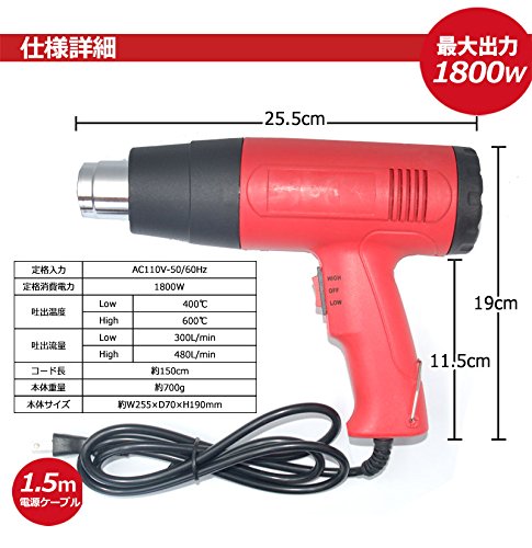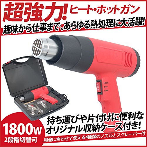 ヒートガン ホットガン 超強力 1800W 熱処理 日本語マニュアル 専用 収納ケース 付き アタッチメント 4種 スクレーパー 付属 送料無料 レッド 赤