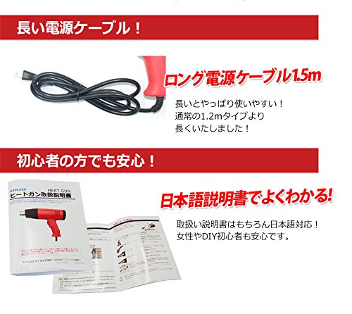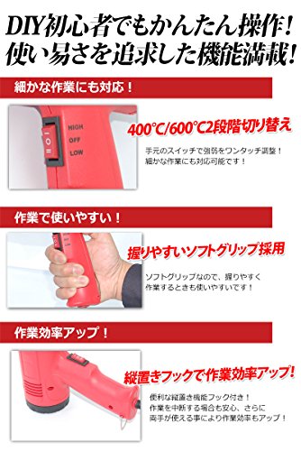 - 安心の 日本語説明書付き 2段階強弱調節機能 付きホットガン です。