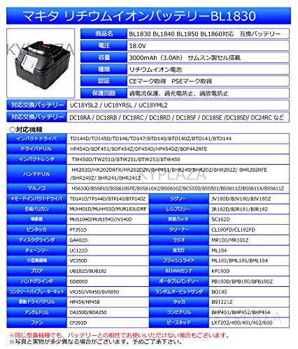 - 【対応充電器】 DC18RA / DC18RB / DC18RC / DC18RD / DC18SF / DC18SE /DC18SD/ DC24RC