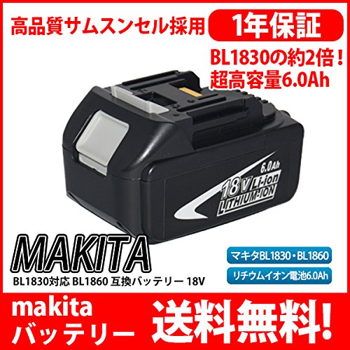 マキタ makita バッテリー リチウムイオン電池 BL1830 BL1860 対応 互換 18V 高品質 サムソン サムスン 製 セル採用 6000mAh 1年保証