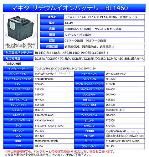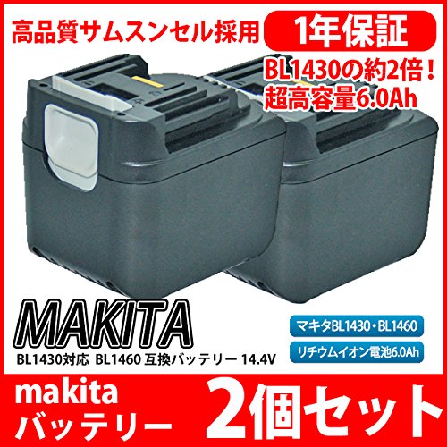 【2個セット】マキタ makita バッテリー リチウムイオン電池 BL1430 BL1460対応 大容量 6000mA 6.0A 互換 14.4V サムソン セル 1年保証