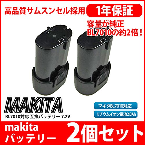 【2個セット】マキタ makita バッテリー リチウムイオン電池 BL7010 対応 互換7.2V 2000mAh 工具用バッテリー 高品質 サムソン サムスン 製 セル採用
