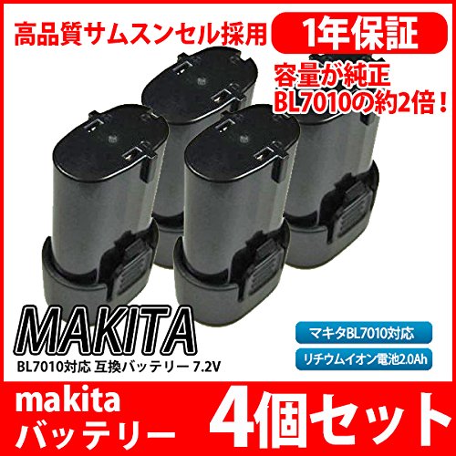 【4個セット】KYPLAZA マキタ makita バッテリー リチウムイオン電池 BL7010 対応 互換7.2V 2000mAh 工具用バッテリー 高品質 サムソン サムスン 製 セル採用