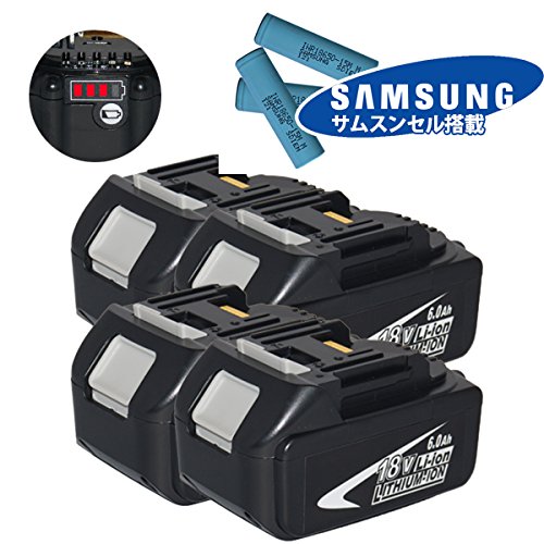 【4個セット】マキタ makita バッテリー リチウムイオン電池 BL1860B 対応 互換 18V 高品質 サムソン サムスン 製 セル採用 6000mAh 残容量表示 自己故障診断機能付 1年保証