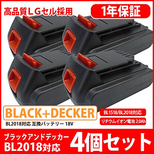 【4個セット】ブラックアンドデッカー BLACK&DECKER 18V 2.0Ah リチウムイオンバッテリー BL2018 BL1518 互換バッテリー 1年保証