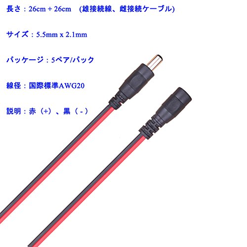 - 簡単なインストール:(DCプラグ規格:外径5.5mm,内径2.1mm)延長コードとして重宝しています,プラグアンドプレイ、必要に応じてこのケーブルを曲げたりねじったりすることができます、非常に柔軟な!赤(+)、黒( - )
